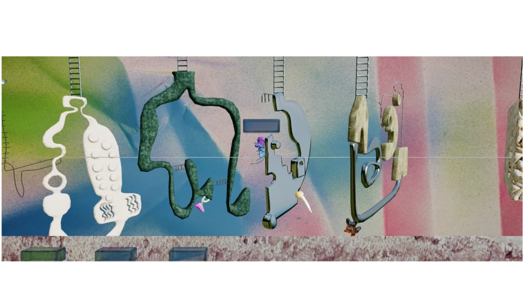 L’expérience numérique est disponible en ligne gratuitement, et pour l’accompagner dans le monde physique, l’artiste a imaginé une borne arcade sculpturale sur laquelle on peut s’appuyer pour jouer.